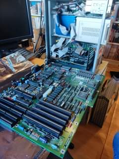 En mijn reserve A3000T moederbord is ook aangekomen van bij Tristan Zondag op de Commodore Club in Maarssen en bizar genoeg lag er op de verkoopsstand een doosje met de meeste chips die op het moederbord horen… More