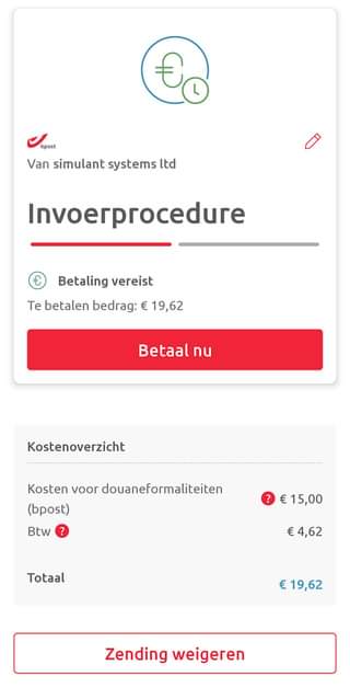 19 euro import tax voor een boekske ... Nee dank u, die zendig is geweigerd.