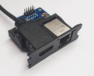 Die HDMI-Ethernet port combo afsluit klepjes voor de Amiga 1200 die je overal op ebay en thingiverse vindt, paste niet voor mijn HDMI kabel en ethernet module.
